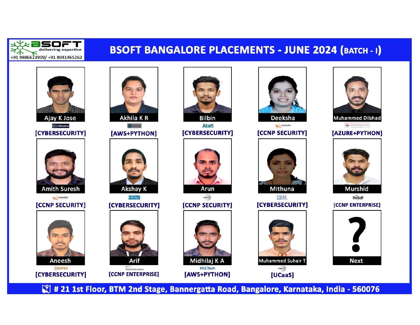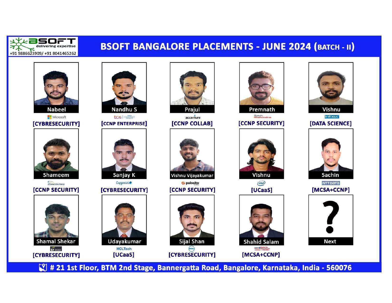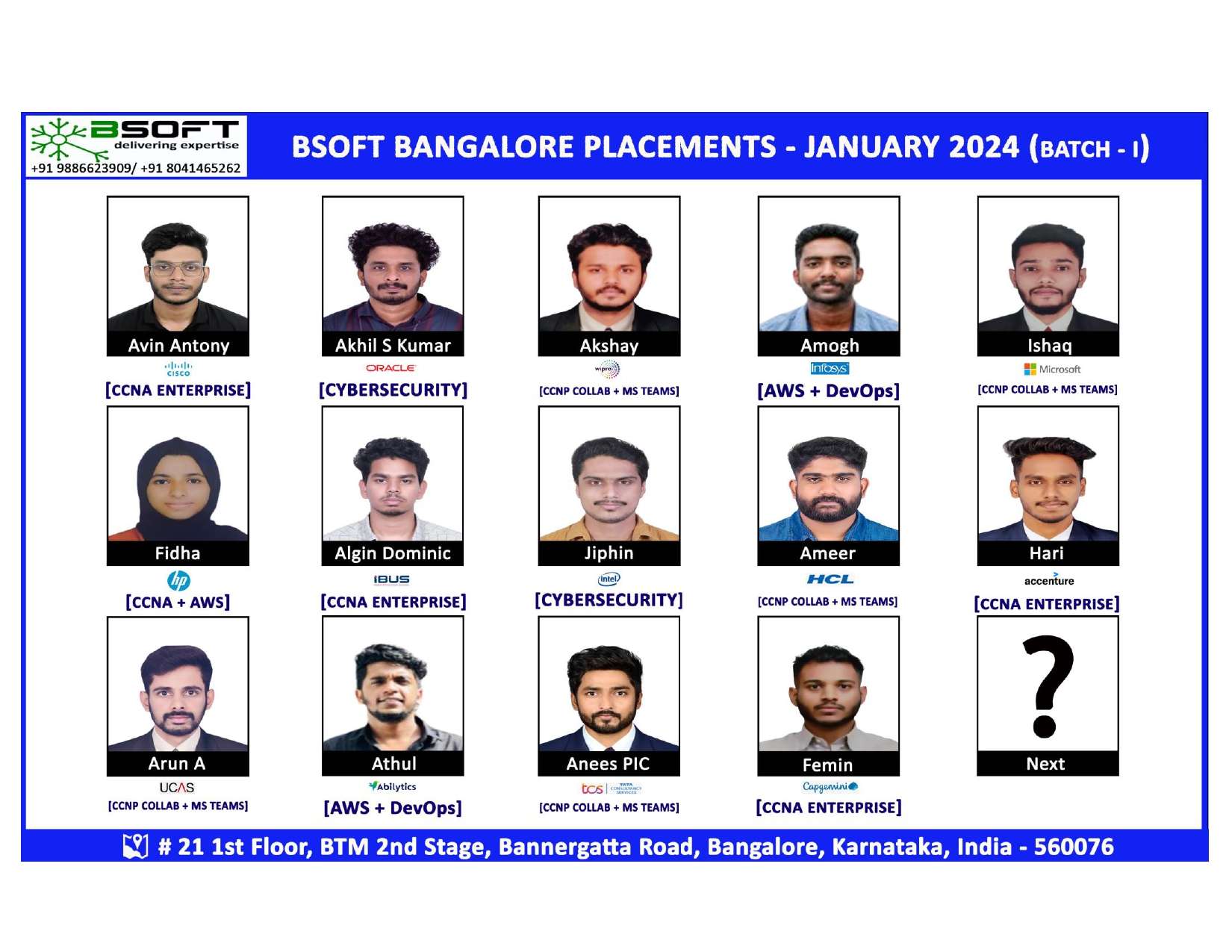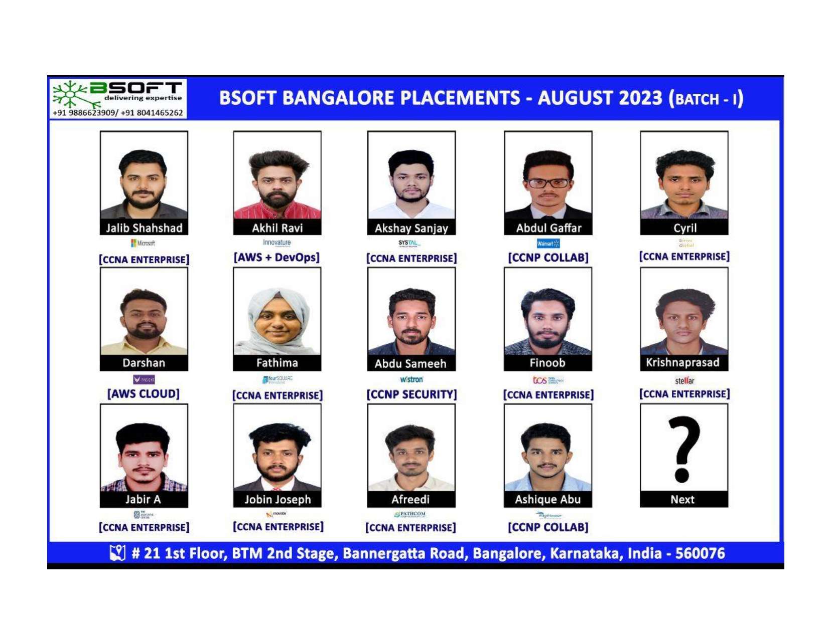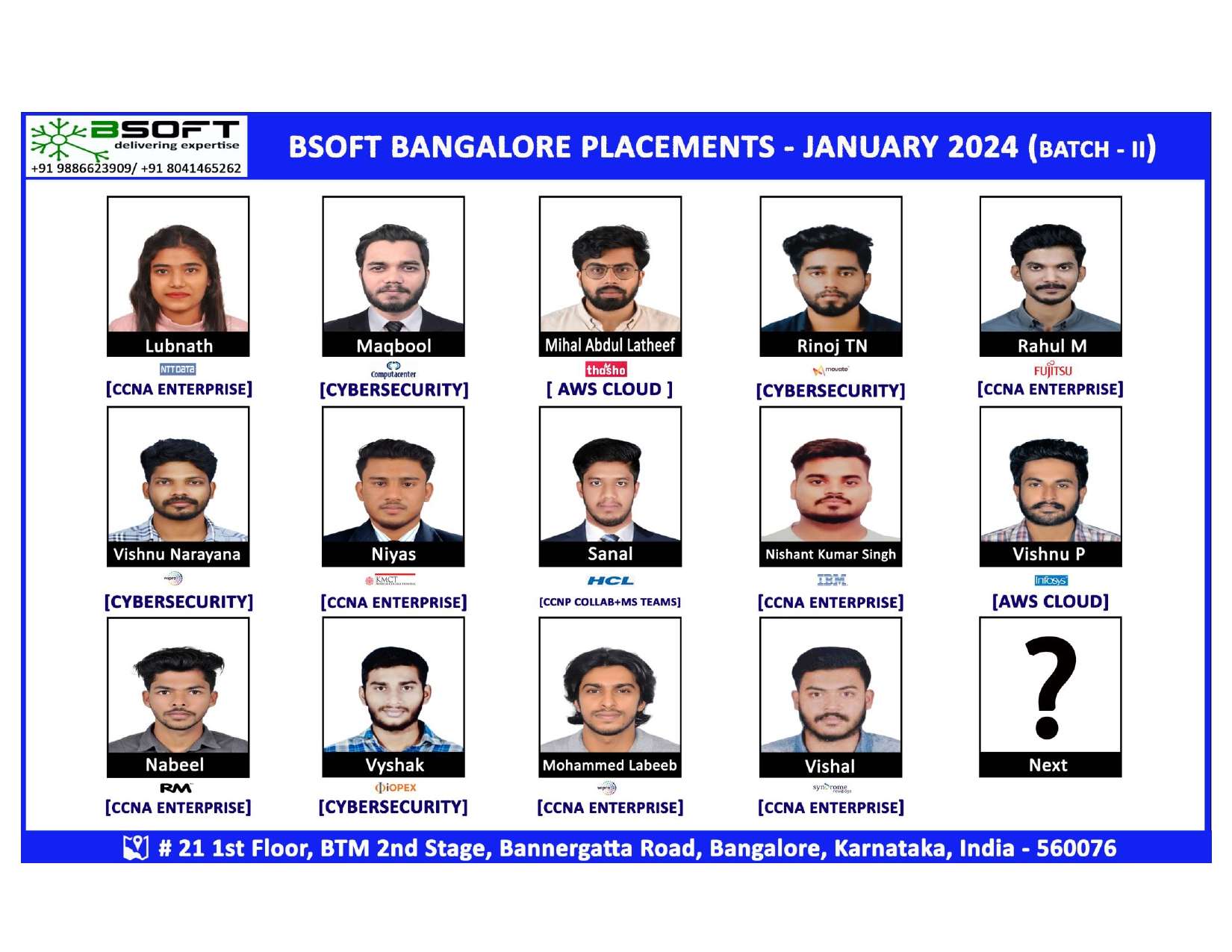 Many of our students have successfully joined companies like TCS, Infosys, Wipro, HCL, Tech Mahindra, Cognizant, and leading startups — and you could be next.