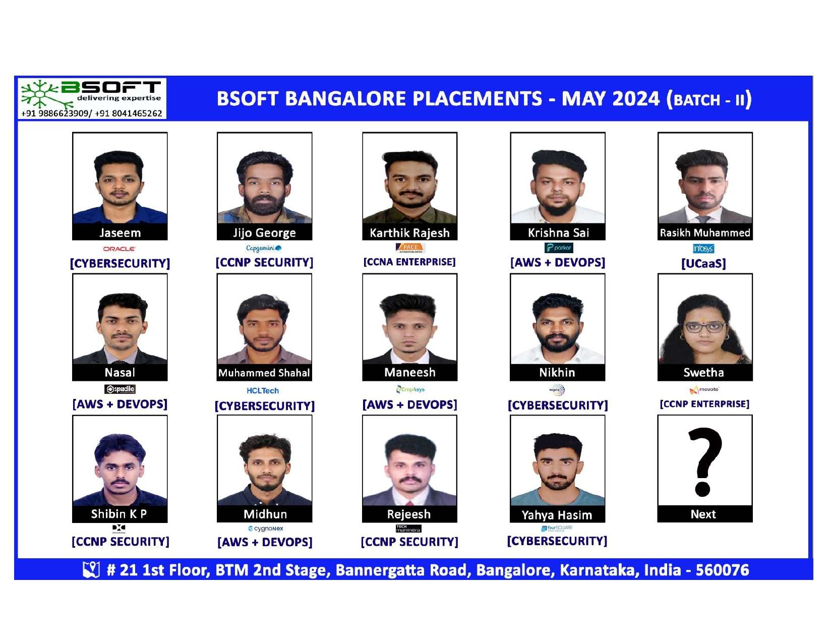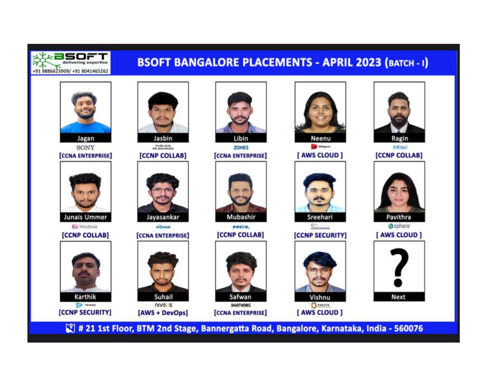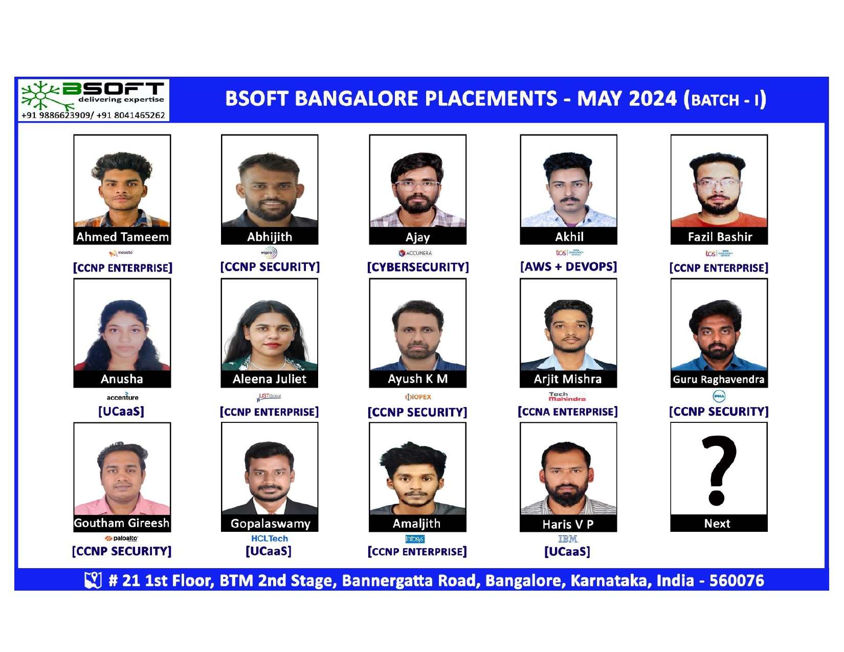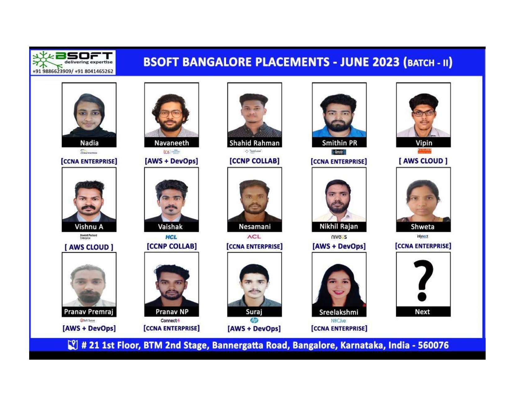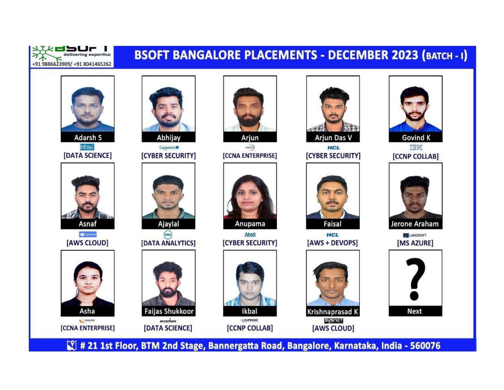 Many of our students have successfully joined companies like TCS, Infosys, Wipro, HCL, Tech Mahindra, Cognizant, and leading startups — and you could be next.