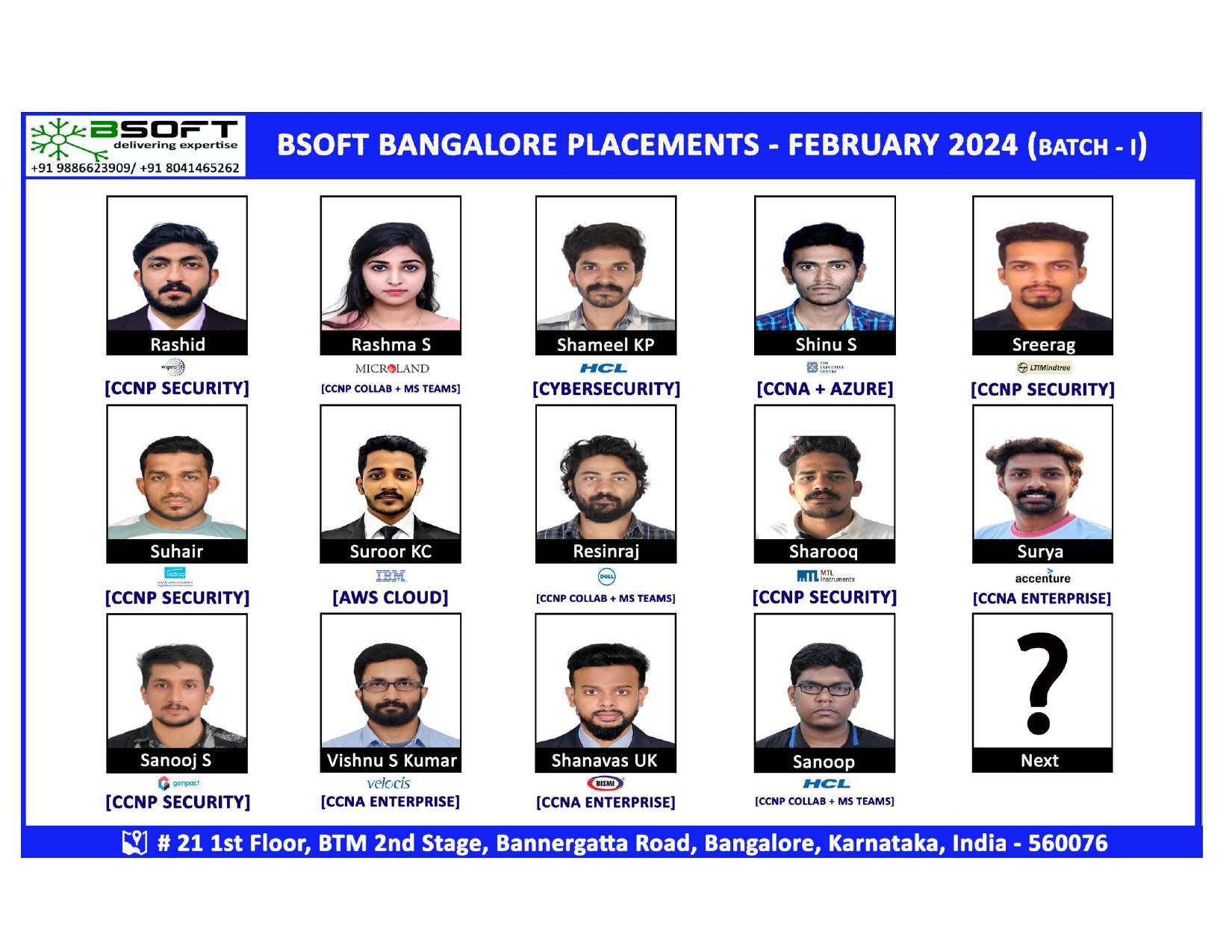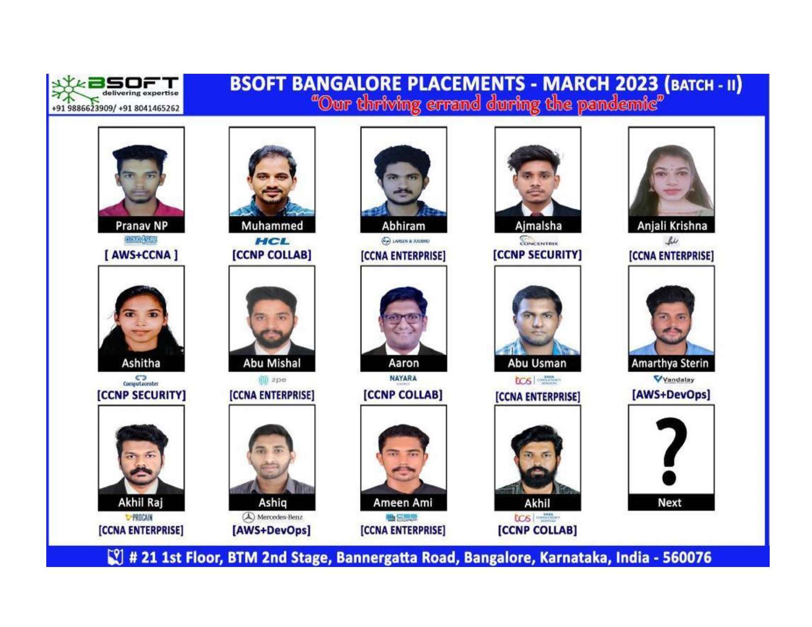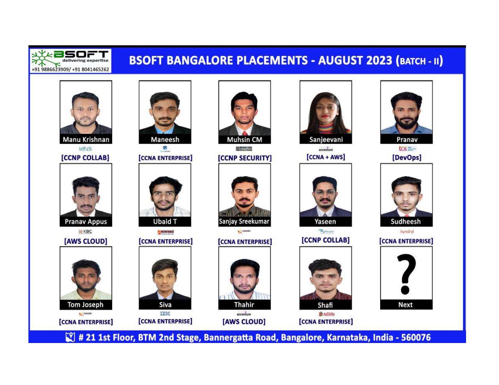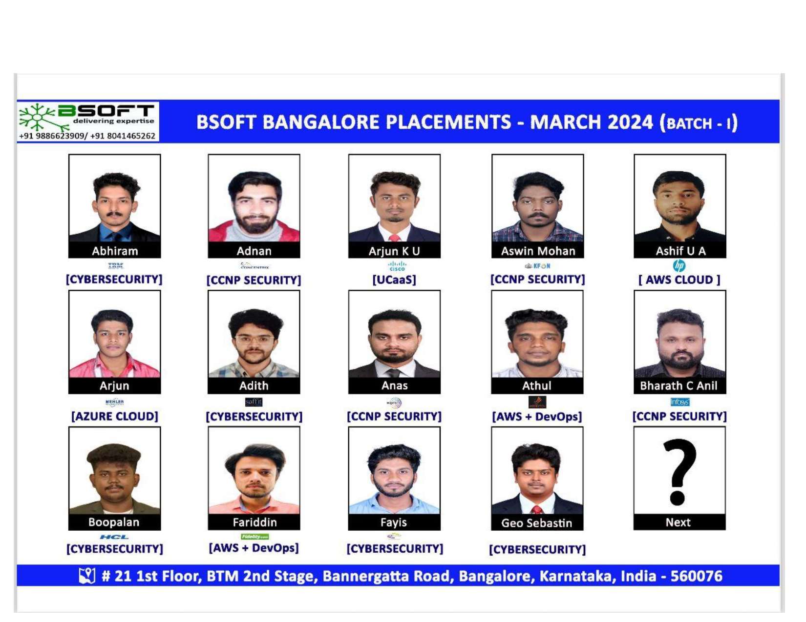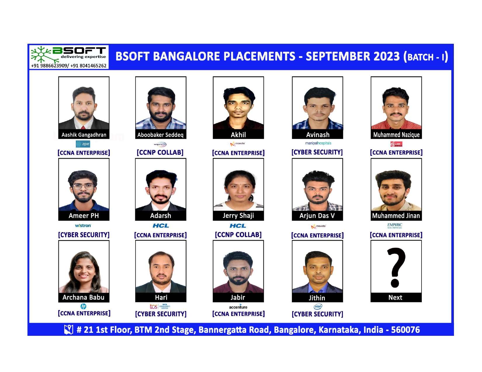 Many of our students have successfully joined companies like TCS, Infosys, Wipro, HCL, Tech Mahindra, Cognizant, and leading startups — and you could be next.