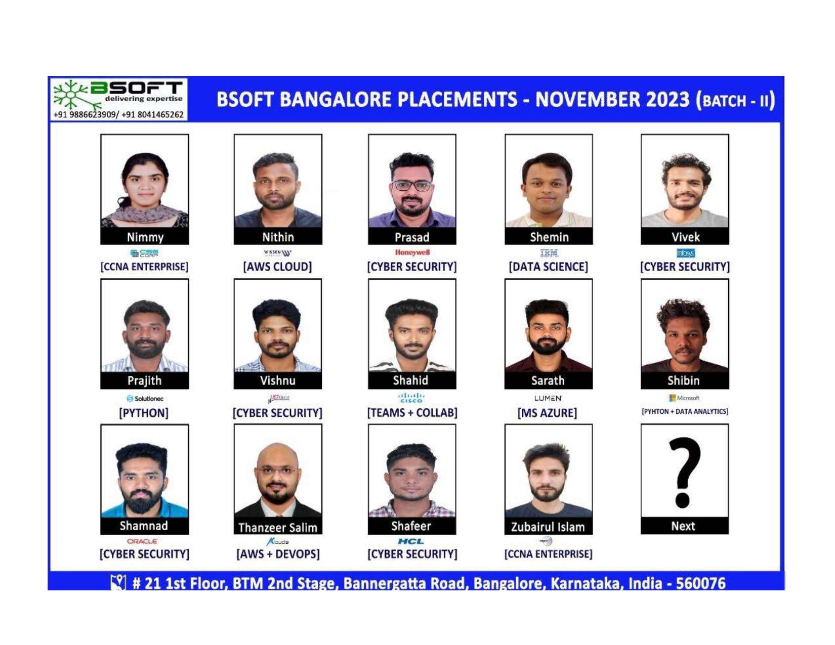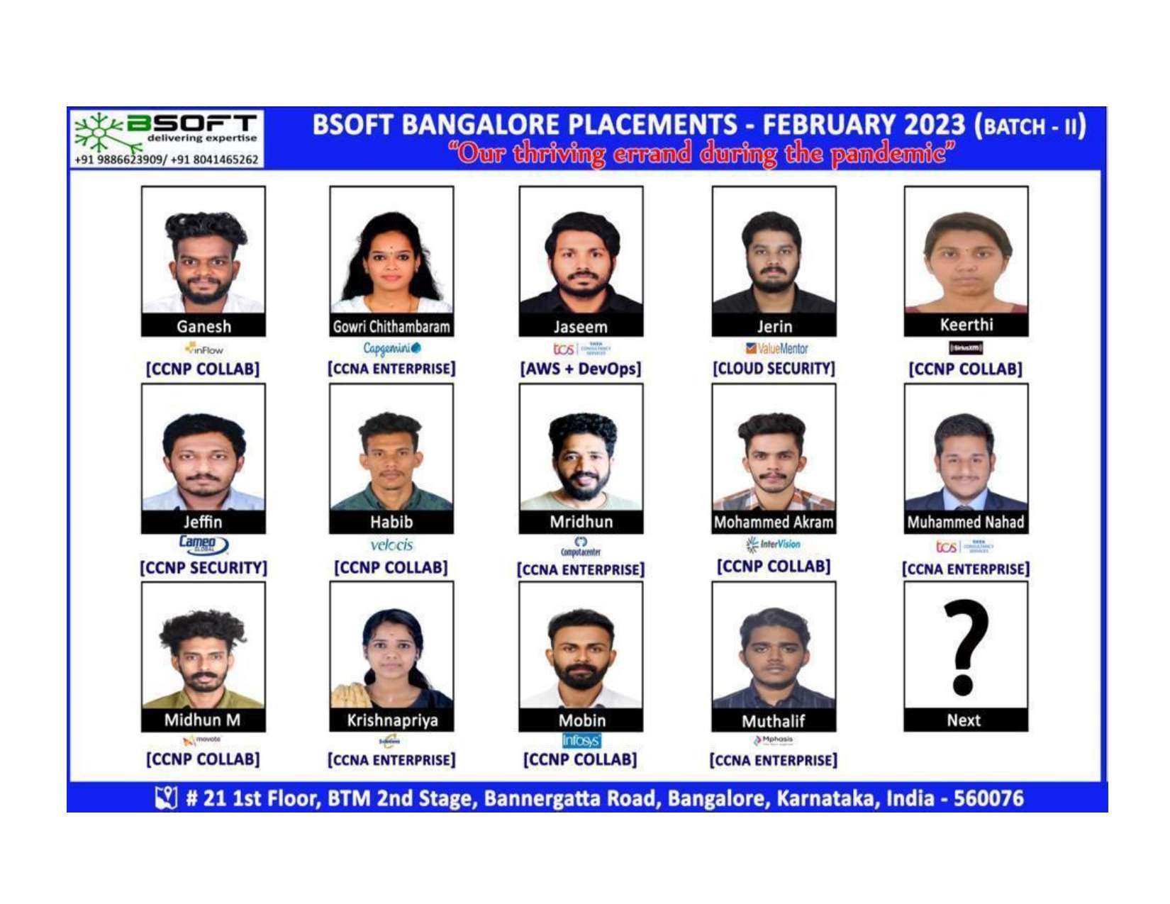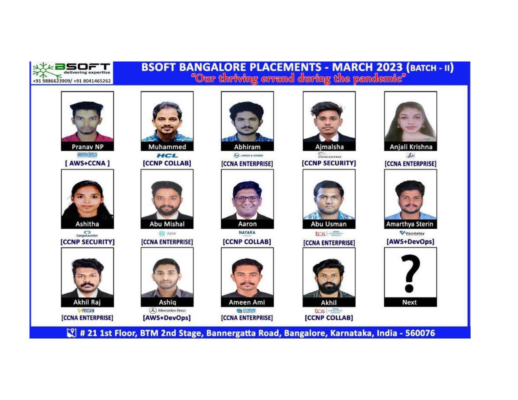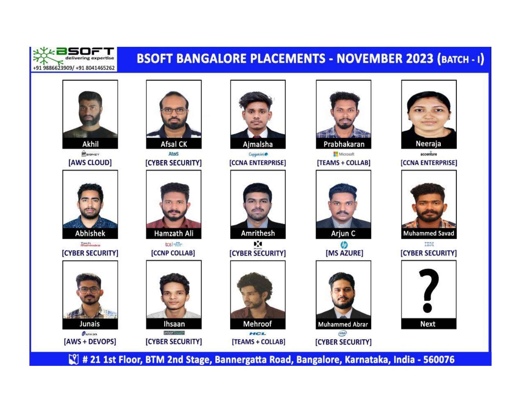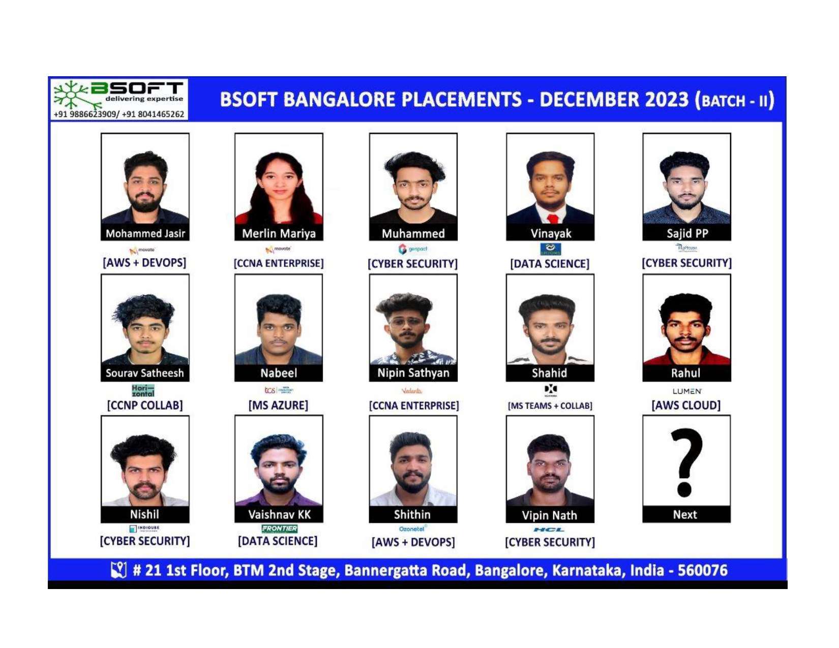Many of our students have successfully joined companies like TCS, Infosys, Wipro, HCL, Tech Mahindra, Cognizant, and leading startups — and you could be next.
