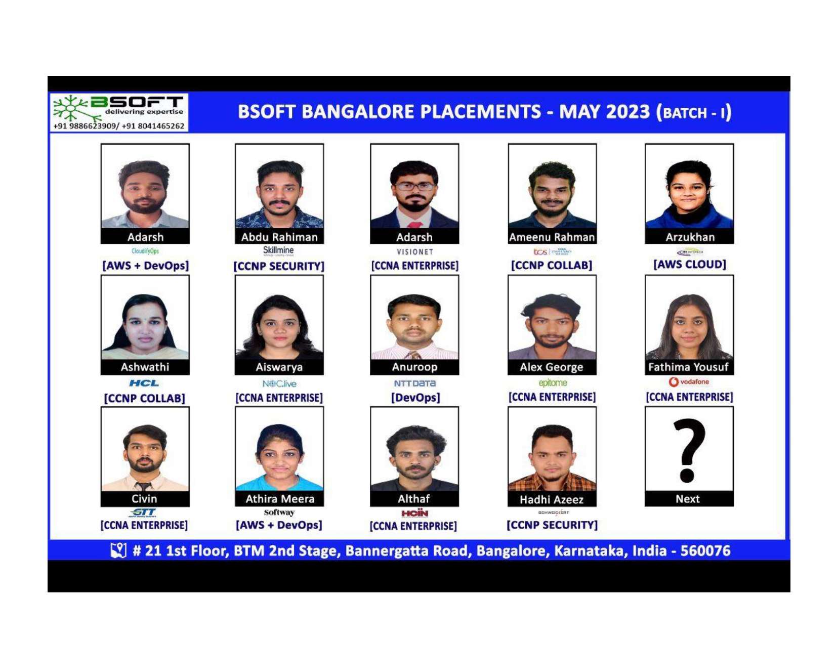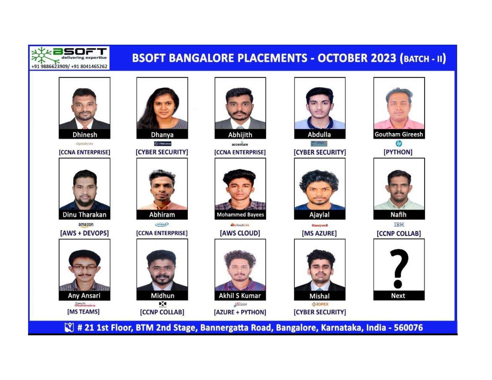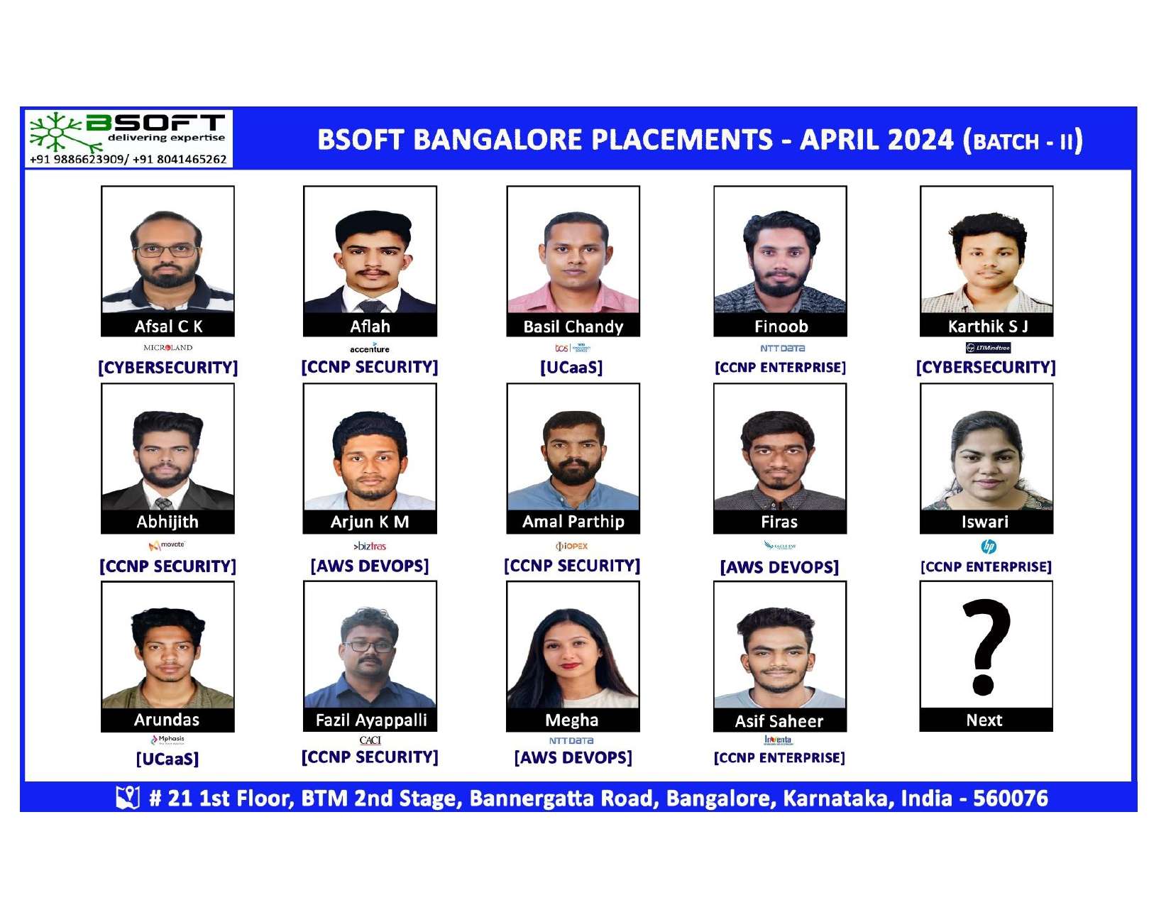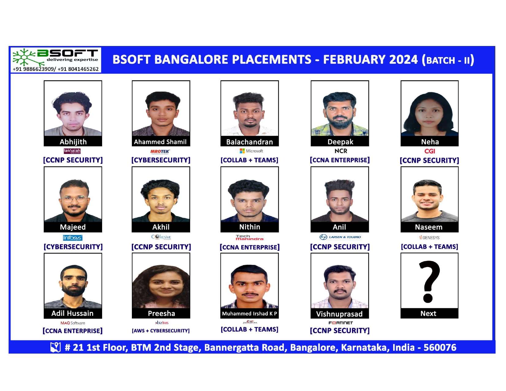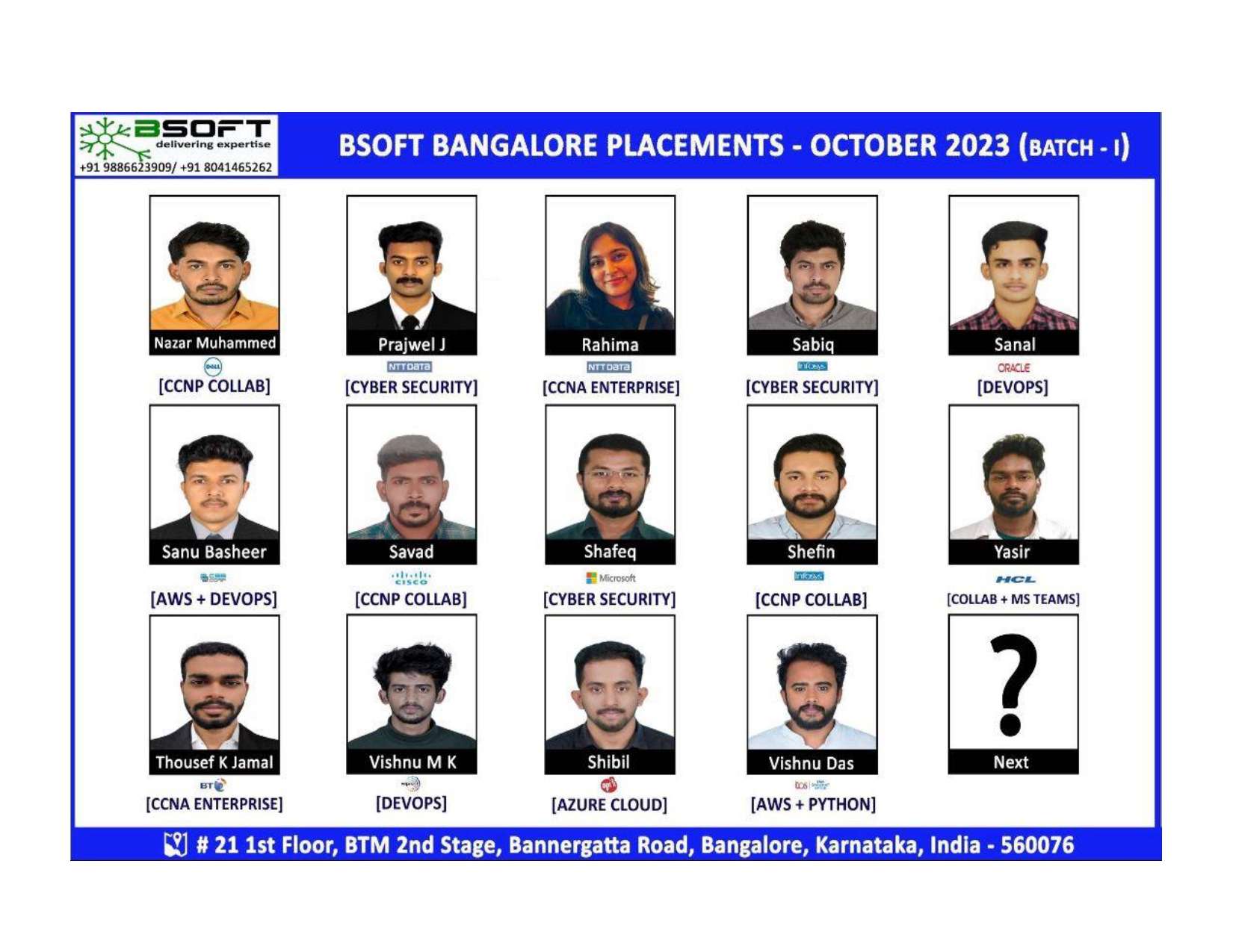 Many of our students have successfully joined companies like TCS, Infosys, Wipro, HCL, Tech Mahindra, Cognizant, and leading startups — and you could be next.