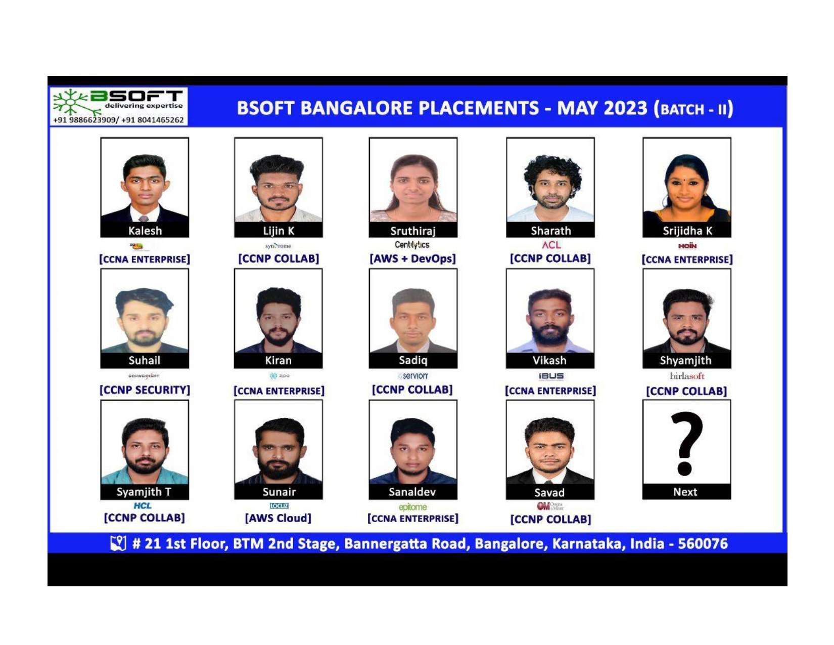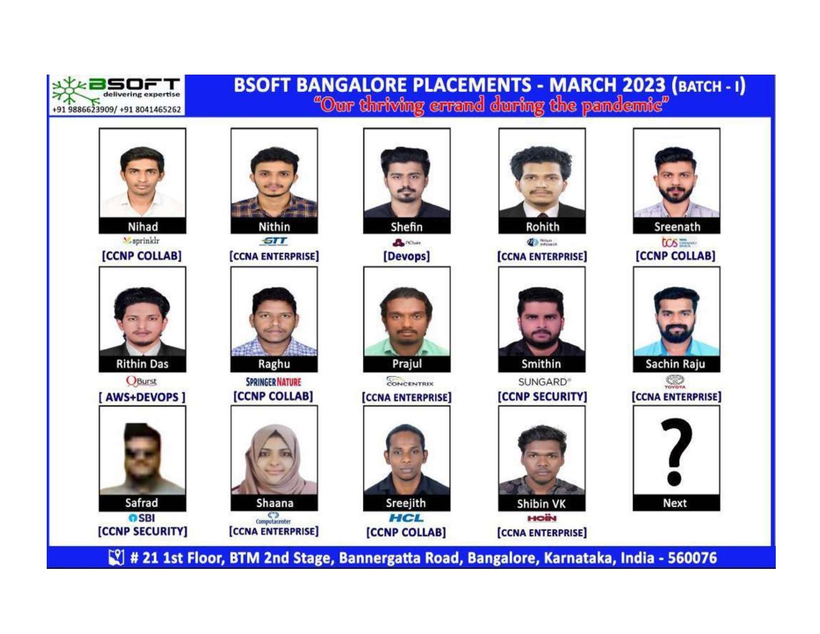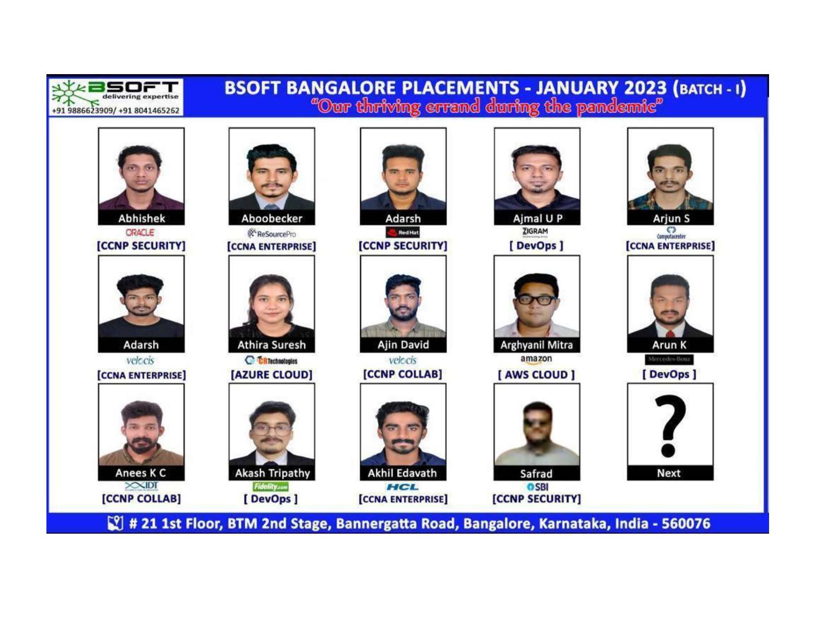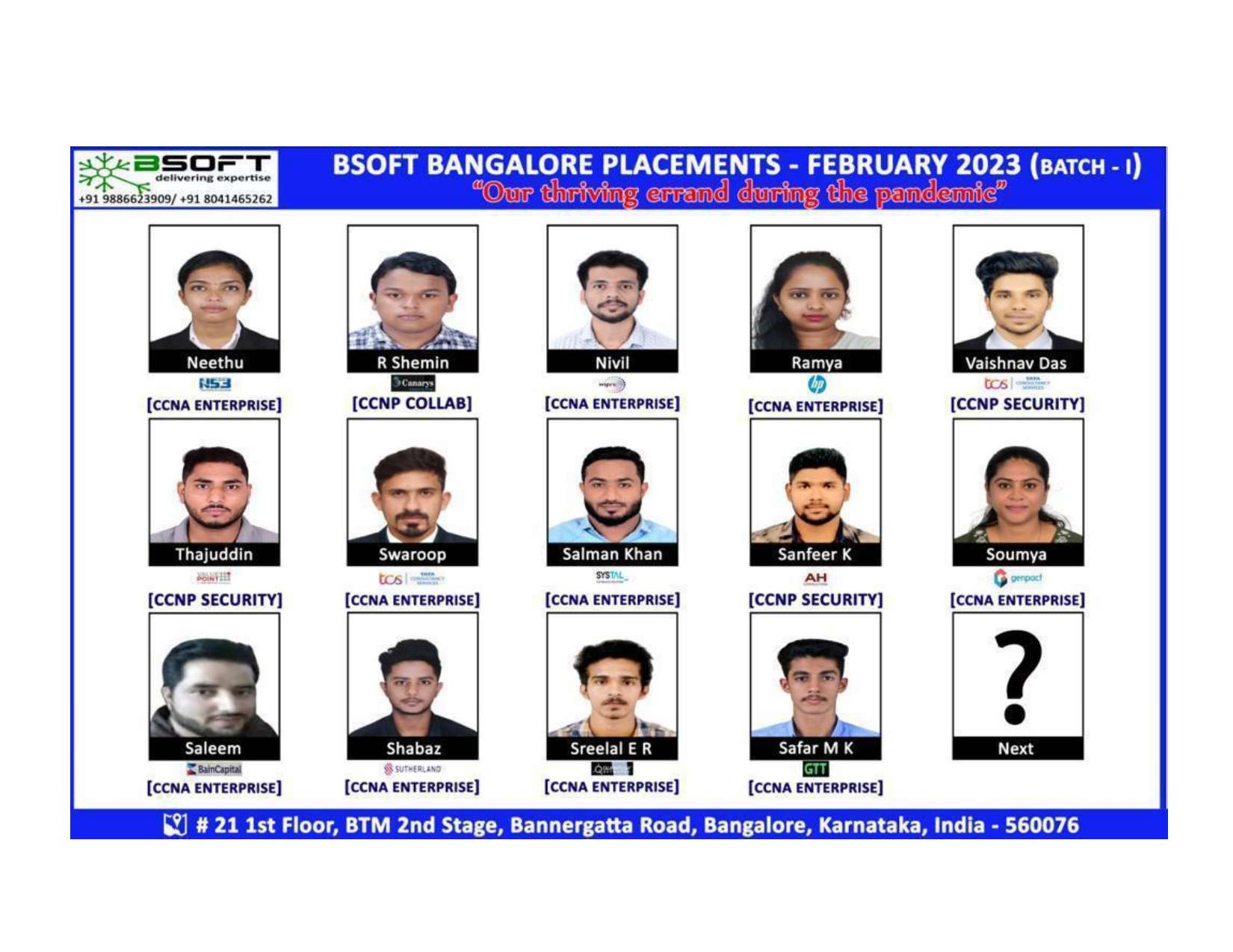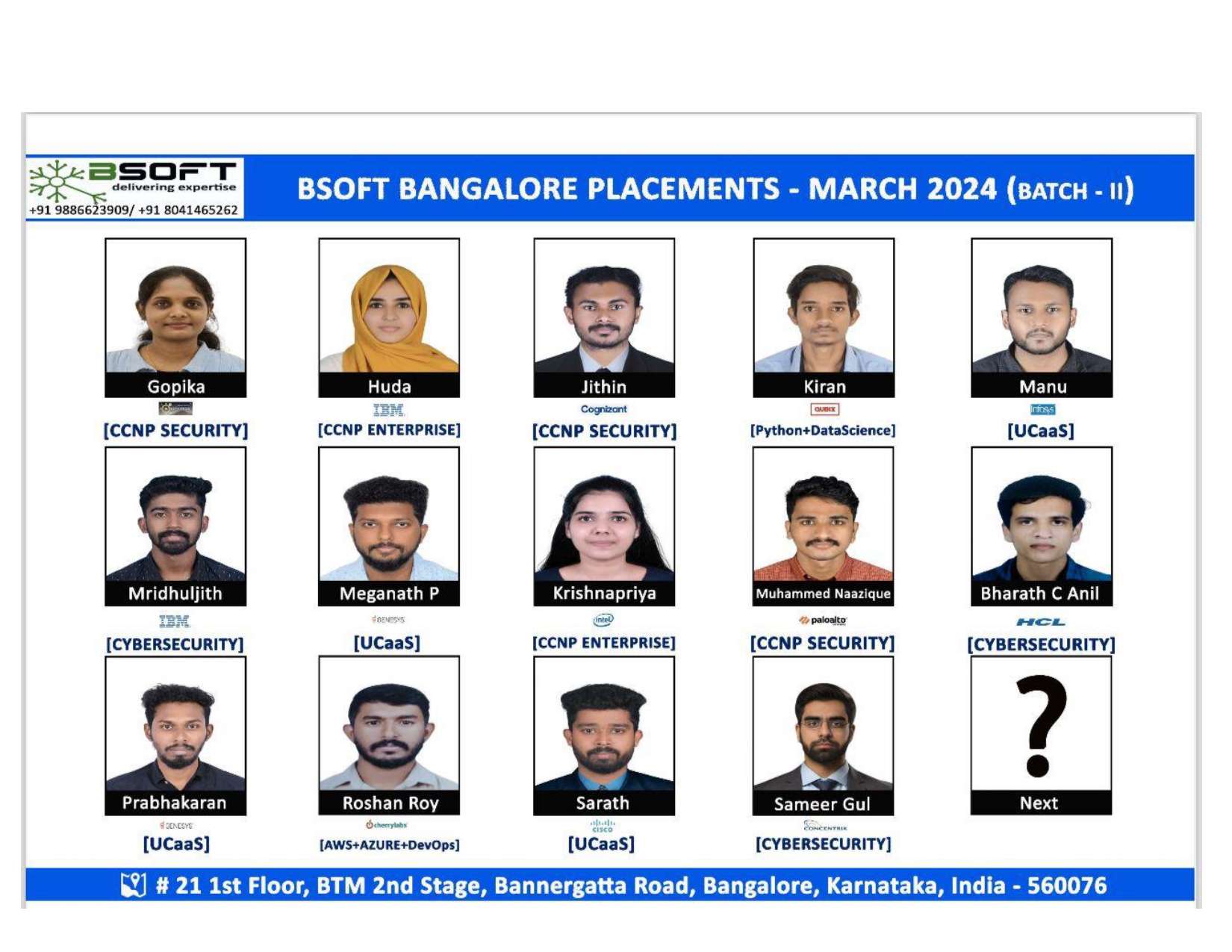 Many of our students have successfully joined companies like TCS, Infosys, Wipro, HCL, Tech Mahindra, Cognizant, and leading startups — and you could be next.