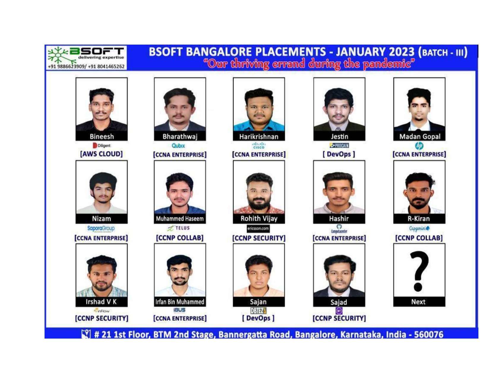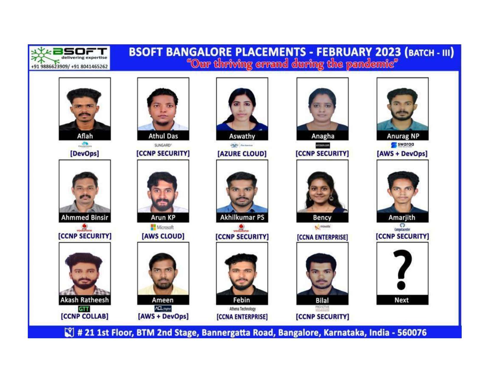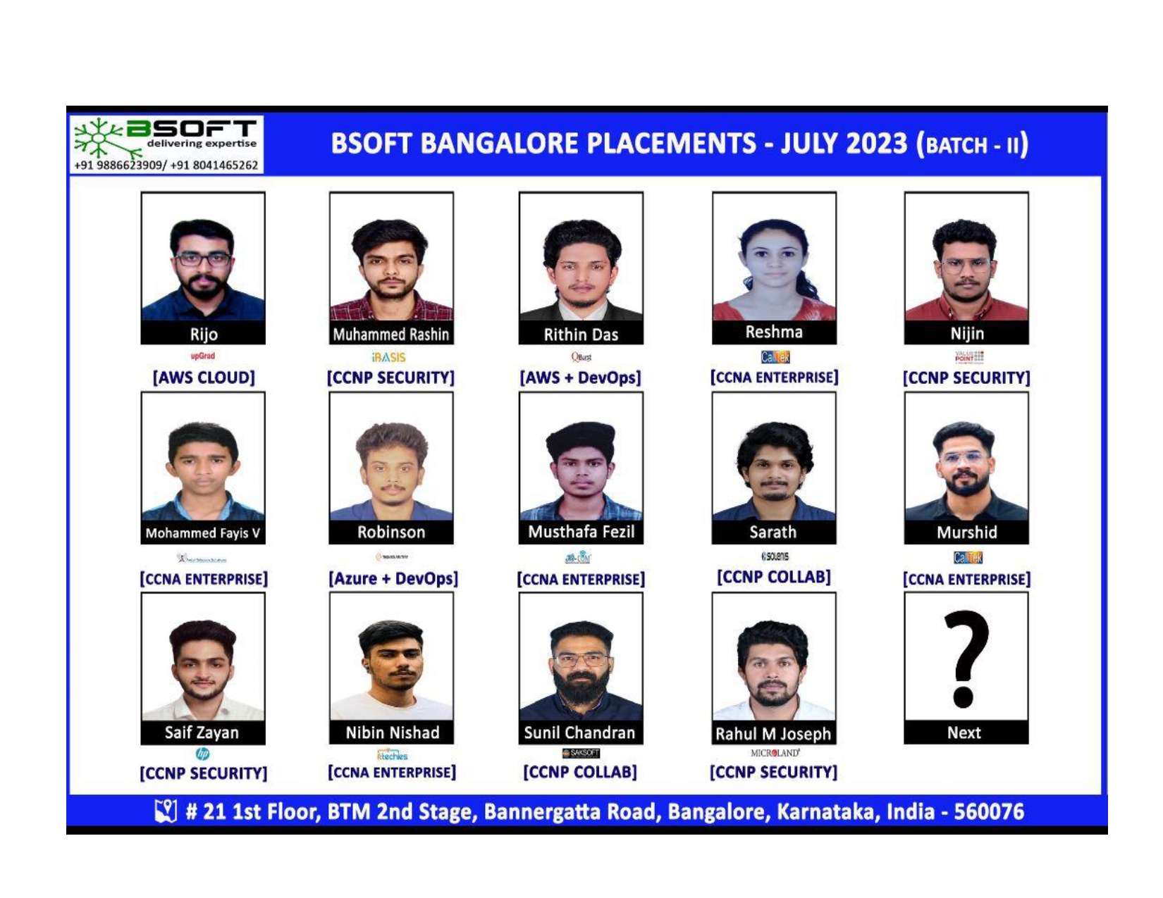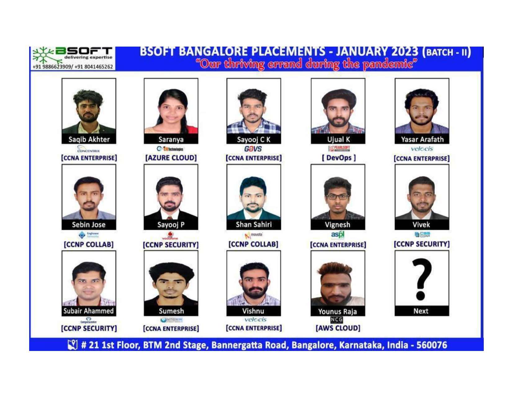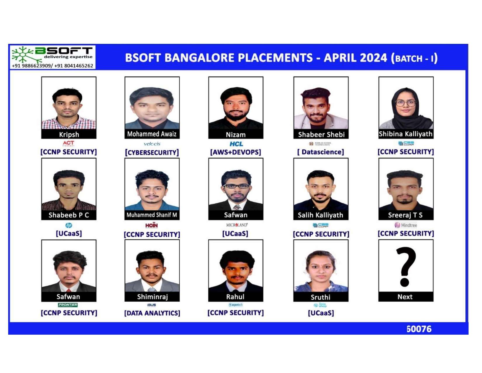 Many of our students have successfully joined companies like TCS, Infosys, Wipro, HCL, Tech Mahindra, Cognizant, and leading startups — and you could be next.