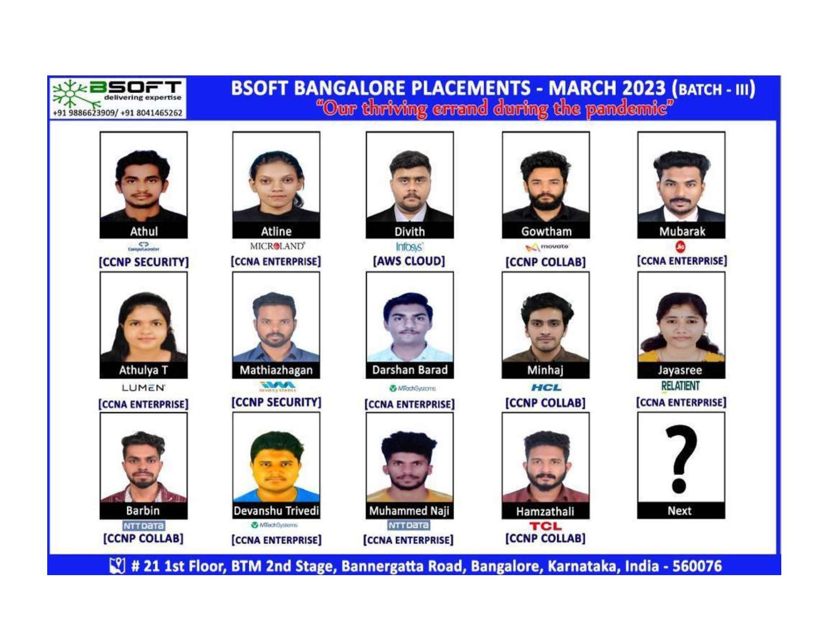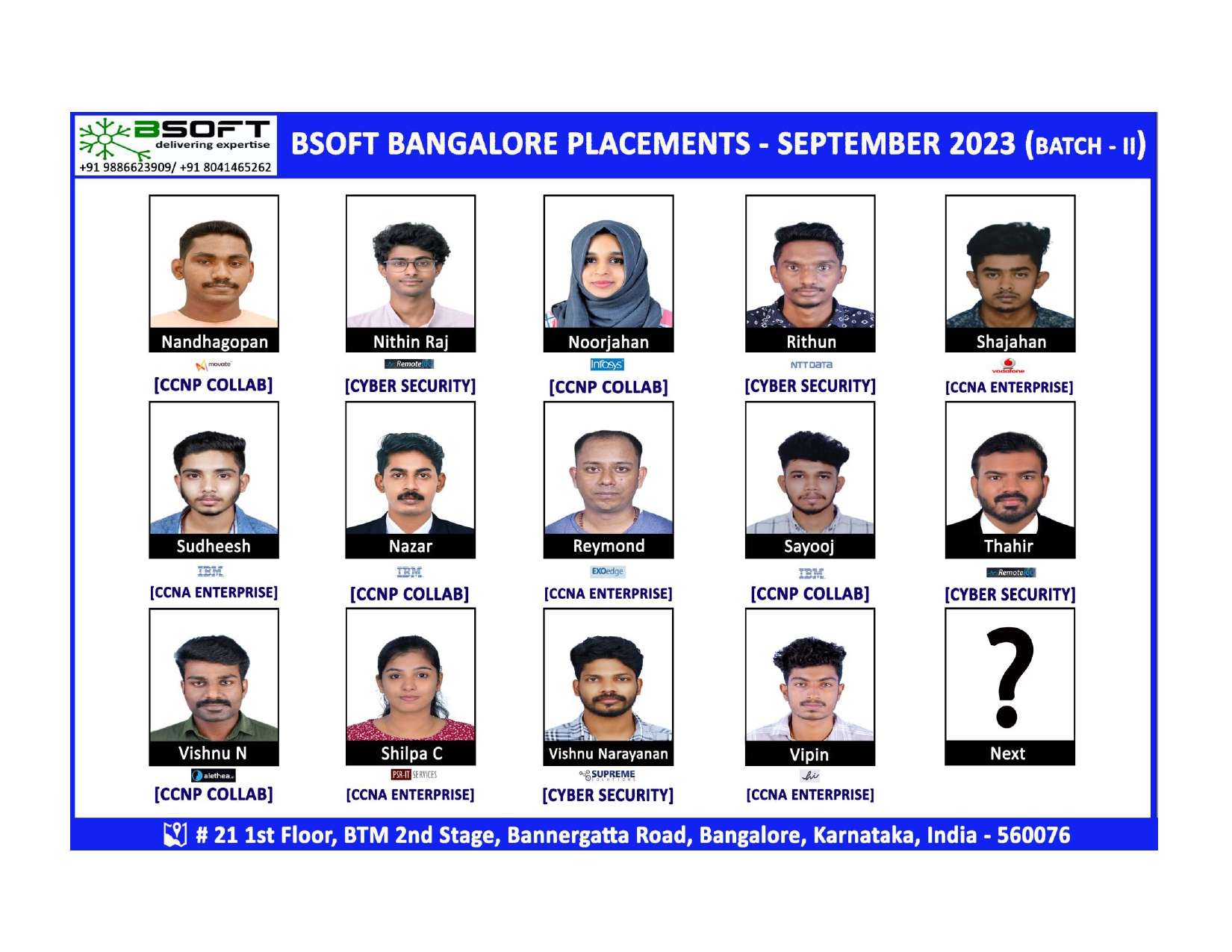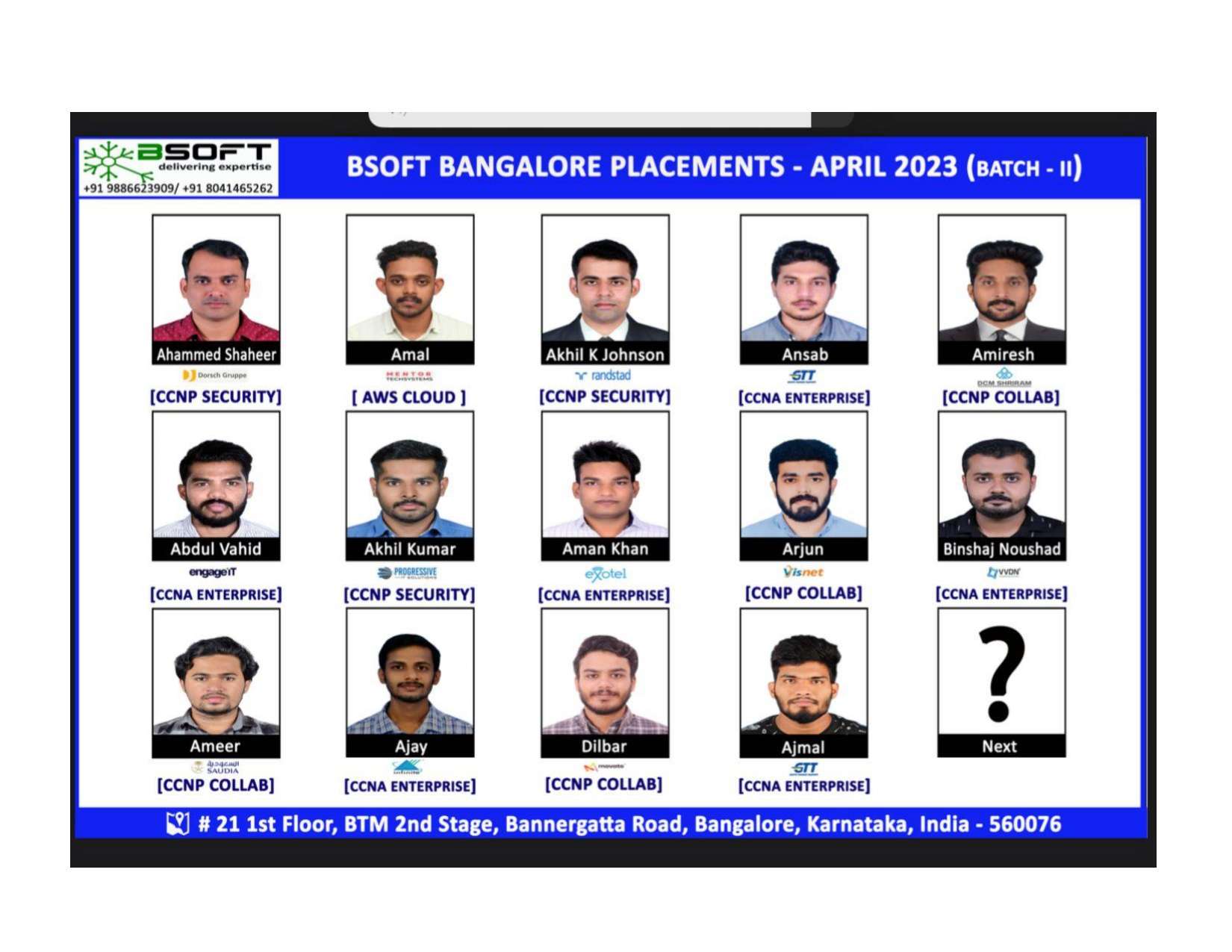 Our dedicated placement team works round the clock to connect our students with top IT companies across India and abroad.